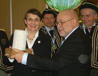 Marie de Metz Noblat s’est vu remettre le prix des mains de Jean Gautron, Président du Syndicat de la Fourme d’Ambert. « J’ai découvert la fourme d’Ambert il y a une quinzaine d’années, alors que j'étais Directrice Marketing de Valmont », a déclaré Marie de Metz Noblat.