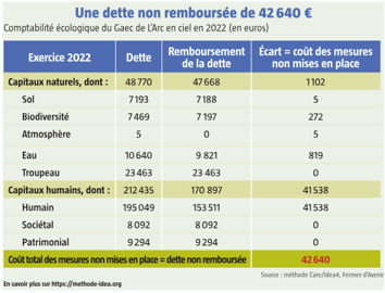 « Les résultats de la comptabilité écologique ont confirmé la performance de notre exploitation sur le plan économique, mais aussi en termes de préservation des capitaux naturels et humains (voir le tableau ci-dessous), constate Gaëtan. Ce sont des critères que nous plaçons en priorité : être bien dans notre tête en étant en phase avec nos valeurs et par un temps de travail maîtrisé. »