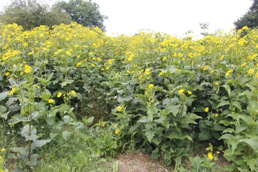 En France comme en Allemagne, la silphie est le plus souvent utilisée pour alimenter les méthaniseurs. C’est un excellent co-substrat pour diversifier la ration avec un pouvoir méthanogène de 291 litres de méthane par kilo de MS, un peu moins qu’un maïs mais avec un rendement à l’hectare souvent supérieur. Autres avantages pour les agriculteurs méthaniseurs : disposer d’une culture pérenne, donc sans travail du sol, ni usage de phytos, avec un enracinement qui protège de l’érosion. Une culture qui participe à la fixation du carbone. Les fleurs de silphie attirent énormément d’insectes et notamment des abeilles. C’est une plante qui est en fleur en août et septembre, avant l’hivernage, à une période où les autres sources de nectar sont plus rares. En outre, les feuilles attachées à la tige recueillent l’eau et la rosée. « Une disposition importante de ruches aux abords d’une parcelle permet un rendement de 150 kg/ha de miel, complète Amédée Perrein. Tous ces avantages écologiques et l’absence de phyto en font une plante idéale pour les ZNT (zone de non-traitement). J’ajouterais que nous n’observons aucun dégât de gibier ni d’oiseaux. Les sangliers ne semblent pas apprécier la silphie et sa texture piquante. »