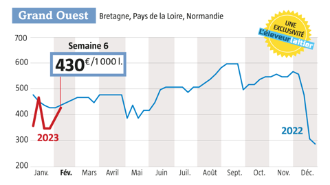 Le prix du lait Spot grignote encore 40€/1000 l en semaine 6.