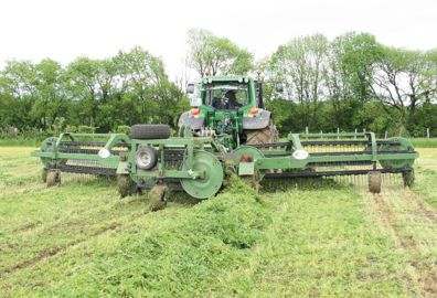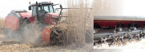 La combinaison du nouveau broyeur frontal de Kuhn et d'une presse haute densité permet de récolter la biomasse en un seul passage.