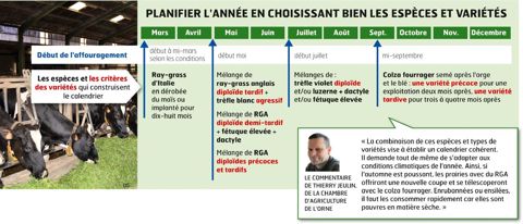 Affourager en vert les vaches laitières une bonne partie de l'année nécessite de sélectionner les espèces prairiales, les couverts végétaux et leurs variétés qui permettent des exploitations successiv (...)