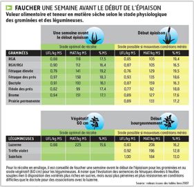 Selon les régions et l'altitude, la récolte des ensilages d'herbe s'étale de fin avril à début juin. Dans tous les cas, l'objectif d'une valeur alimentaire élevée passe par une coupe précoce.