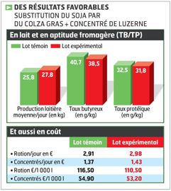 Remplacer le tourteau de soja par un mélange tourteau de colza gras-concentré de luzerne a été testé avec succès.