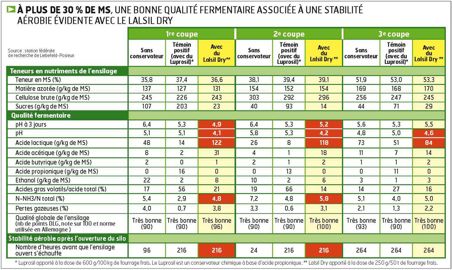 Les tests d'homologation, toujours obligatoires en Suisse pour les conservateurs d'ensilage, confirment l'intérêt du Lalsil Dry pour les ensilages d'herbe bien préfanés.