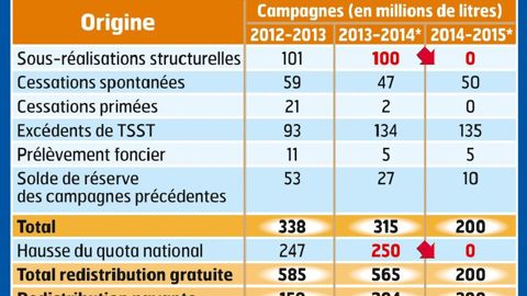 2,3 % du quota national étaient disponibles pour une distribution gratuite en 2012-2013. Les JA se sont accaparés la part du lion. Dans deux ans, le gâteau sera réduit avant que le régime des quotas d (...)