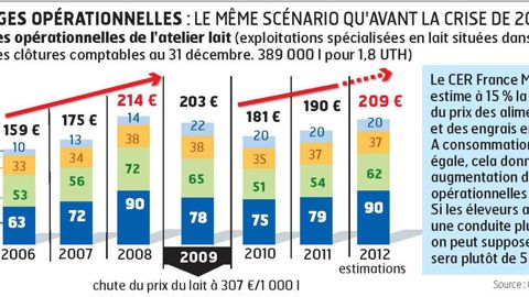 La hausse des dépenses en intrants jusqu'en 2009, couplée à la chute du prix du lait cette année-là, avait plombé les comptes. Attention à ne pas revivre cette situation.
