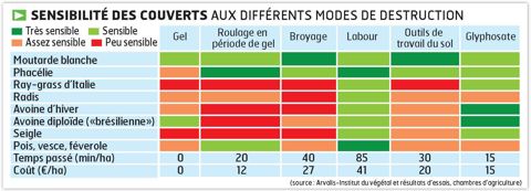 La destruction mécanique de couverts semés à base de ray-grass présente des difficultés. Dans ce domaine, les passages croisés d'outils de travail du sol associés au labour représentent une alternativ (...)