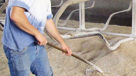 BEAUCOUP DE SOINS AUX LOGETTES La litière est composée de carbonate et balle de riz dans des proportions respectives de 73 % et 23 %. Le carbonate a pour rôle d'assécher la litière. Cela diminue la prolifération des bactéries pathogènes et ainsi préserve la santé de la mamelle. De plus, par son utilisation comme engrais, il permet un chaulage d'entretien dans les sols acides. La balle de riz assure le confort, capte également l'humidité et évite d'avoir de la paille dans la fosse à lisier. Ce mélange incite les vaches à se reposer plus longtemps dans les logettes, tout en gardant des mamelles propres. Le coût de cette litière est de 0,20 €/logette/jour. Celles-ci ont toujours besoin d'un nettoyage deux fois par jour de dix minutes matin et soir pour cinquante logettes.