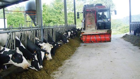 AUCUN MATÉRIEL, TOUT EST DÉLÉGUÉ À UNE COOP Les travaux réclamant du matériel sont délégués à une coopérative (l'équivalent d'une Cuma chez nous) et en premier lieu, la distribution de l'alimentation des vaches laitières et génisses (coût : 9,20 €/1 000 l). Tous les travaux aux champs (préparation des sols, semis, épandage, récoltes, jusqu'à l'ensilage rendu silo) sont sous-traités à cette coopérative. Cette stratégie a un coût. En contrepartie, l'exploitation n'a aucun matériel, même pas une bétaillère pour le déplacement des animaux, seulement trois tracteurs très anciens. Ainsi toute la main-d'oeuvre disponible se concentre sur la gestion du troupeau.