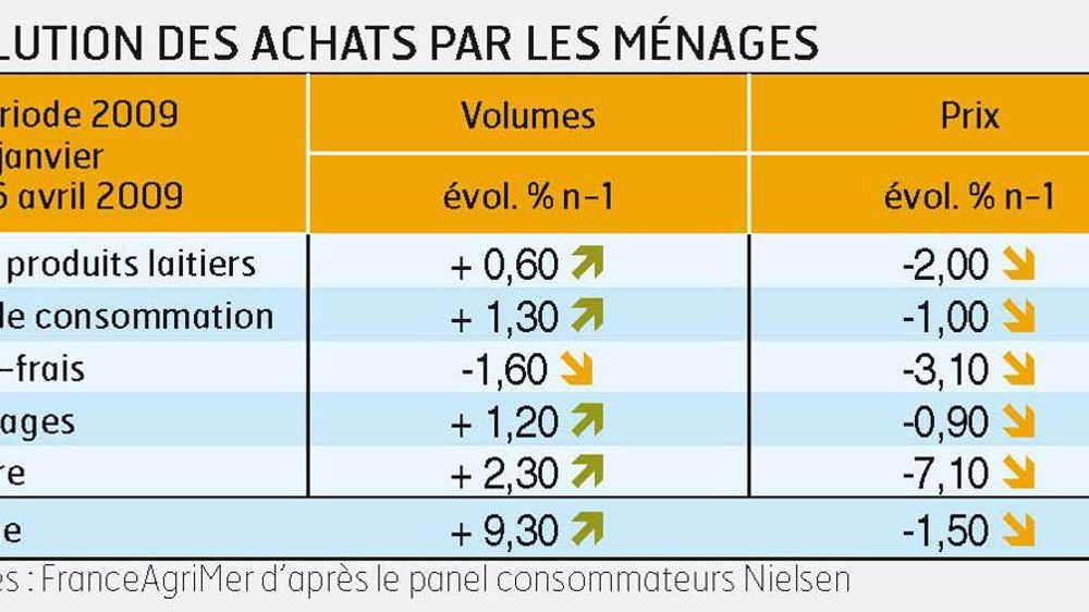 Le fléchissement du mois dernier ne s'est pas confirmé et la consommation des produits laitiers reste bien orientée. Même l'ultrafrais qui avait été un peu secoué retrouve son niveau d'avril 2008. Mais les prix de vente industriels sont à la baisse : - 5,5 % en février sur les marques. Les prix à la consommation ont eux aussi fléchi, mais dans une moindre mesure. Comprenez que les distributeurs augmentent leurs marges.