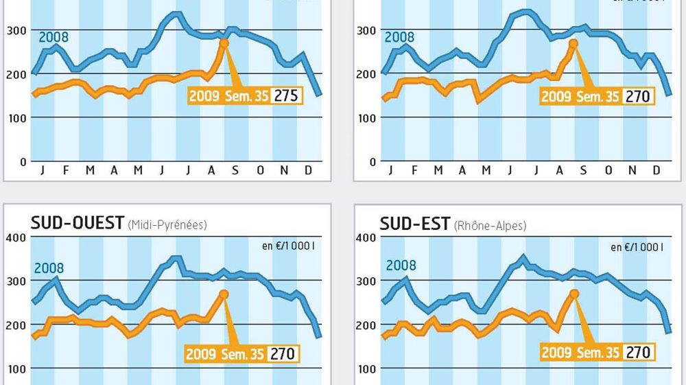 (*) Lait en excédent échangé par les entreprises. Source: enquête de L'Éleveur laitier
