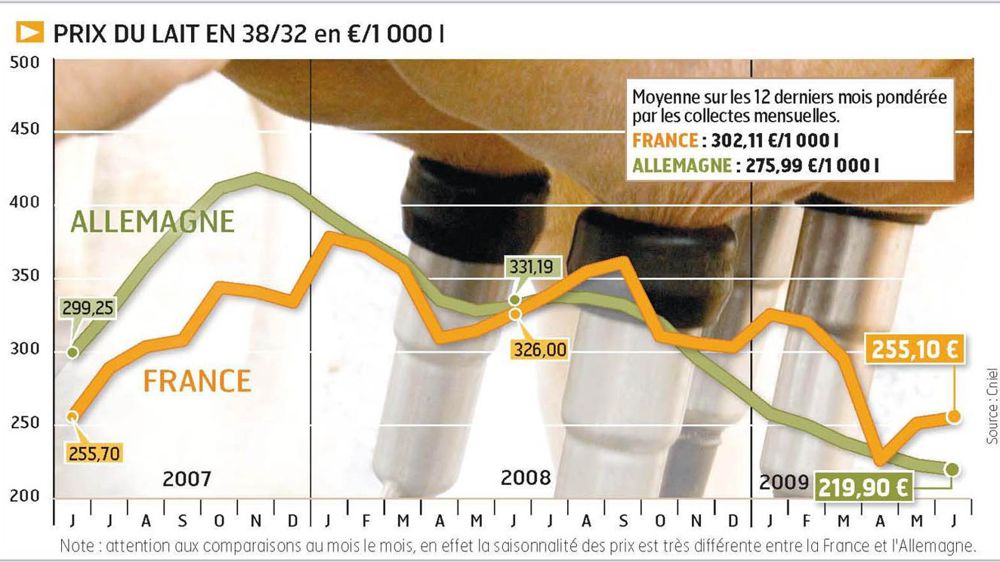 Depuis le tour de vis intervenu en mai, la quasitotalité des laiteries allemandes a reconduit ses prix du lait. C'est ainsi que dans le nord où ils varient de 17 à 22 c/kg (lait à 37/34) en juillet, Nordmilch et Rücker sont toujours « scotchés » à 21 et 19 c. À l'ouest, Humana et Campina campent à 22 et 20 c. Müller paye, dans le sud, 22,35 c. Cette laiterie est l'une des rares à avoir un peu « réhaussé » sa grille en juillet. Avec 1 c de plus, ses livreurs de l'est ont été payés 21 c. La laiterie qui paye le moins, située au nord, est toujours à 17 c. La plus généreuse, au sud, est à 25,55 c en lait conventionnel.