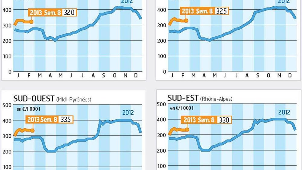 La rareté des volumes de lait Spot aurait dû doper les cours, si les volumes collectés ne satisfaisaient les besoins industriels actuels atones. À l'export, les ouvertures sur l'Asie ou le Moyen-Orient sont très en retrait, comparé à 2011. La fermeture récente de la Russie aux fromages de 50 laiteries allemandes laisse espérer des occasions à certains. Mais la Russie aurait aussi des stocks bien fournis, et la Biélorussie ou l'Ukraine assez de marchandises pour l'approvisionner. Côté Algérie, on attendait toujours, mi-février, la confirmation d'un appel d'offres pour 30 000 t de poudre écrémée.