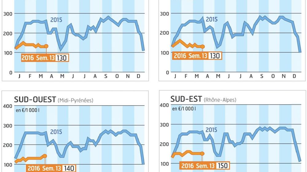 Il n'y a aucune raison pour que le marché s'anime tant que persistera l'inadéquation entre une offre de lait abondante au regard d'une demande des industriels qui reste complètement atone. Depuis début février, les cotations du lait Spot ont toutes les apparences d'un encéphalogramme quasi plat, avec des prix bloqués à 130-140 €/1 000 l dans la moitié nord. Idem dans la moitié sud. Au cours du dernier mois, les acheteurs italiens ont été très discrets, trouvant chez eux la matière première et n'ayant pas non plus à répondre à une consommation intérieure très dynamique.