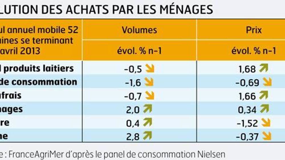 Les transformateurs français peuvent regarder avec envie leurs concurrents d'outre-Rhin. Depuis début mai, la grande distribution allemande, y compris le hard discount, leur a accordé des hausses de tarifs plus que conséquentes sur les PGC. On parle de 5 % pour les fromages, 10 % pour le lait de consommation et 20 % pour le beurre. Dans l'Hexagone, il a fallu que les pouvoirs publics s'en mêlent pour une hausse de tarif admise de 3 c/l sur le lait de consommation et 2 c/l de lait entrant dans la fabrication des autres produits laitiers. Ceci à partir de juin pour assurer une hausse du prix du lait aux producteurs. Mais les transformateurs se plaignent aujourd'hui de cet interventionnisme de l'État, affirmant qu'ils étaient en négociation avec la distribution pour passer des hausses bien supérieures sur les marques de distributeurs et les premiers prix en arguant du manque de lait. Seule bonne nouvelle sur le front des PGC, la météo fraîche de ce printemps aura dopé la consommation de fromages (+3,2 % en mars), de beurre et de crème. À l'inverse, l'ultrafrais a été plus boudé.