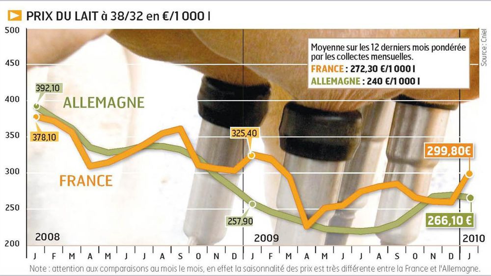 Après avoir légèrement fléchi en janvier, le prix du lait a été reconduit en février dans la quasi-totalité des laiteries. Dans le nord où les écarts se resserrent (25 à 26 c/kg, lait à 37/34), le géant Nordmilch reste scotché à 26 c/kg. Comme à l'ouest, Humana (26 c/kg) ou la MUH (25 c/kg), gros exportateur de lait premier prix. Prix reconduits aussi à l'est à des niveaux comparables. Müller en Saxe paye 25,5 c/kg en février. Le lait n'est guère mieux payé au sud, pourtant gros fabricant de PGC. Alignés sur janvier, les prix y tournent entre 25 et 28 c/kg. Exception chez Allgäuland, en difficulté, avec ses 22,39 c/kg (- 0.15 c).