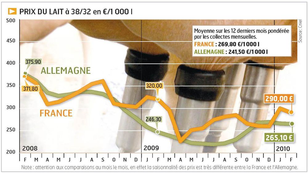 Comme en février, la quasitotalité des laiteries allemandes ont reconduit leur prix en mars. Au nord, le géant Nordmilch reste campé à 26 c/kg (lait à 37/34) depuis novembre. Les prix y varient peu de 25 à 26 c. Dans le sud, pourtant gros fabricant de PGC, les entreprises continuent à avoir du mal à mieux payer qu'au nord, plus spécialisé en produits industriels : moins de 1 c de plus en moyenne. À l'est, les laiteries semblent s'être donné le mot pour s'aligner à 26 c/kg. C'est aussi le prix d'Humana, à l'est. Exception à toutes ces reconductions, Friesland Campina, où le prix décroche de 25 à 23,50 c en mars