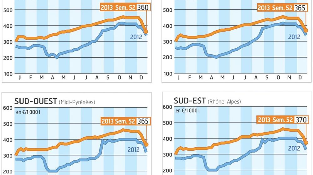 La baisse des cours du Spot à l'approche des fêtes est traditionnelle. Ce qui l'est moins, c'est le lait que les traders ont du mal à placer. La faute à des tours de séchage qui, en France (et ailleurs en Europe), sont saturées par un afflux inhabituel lié à une collecte qui a repris vigueur et à des fromageries qui lèvent le pied à la veille de Noël. Selon toute vraisemblance, le prix du lait Spot devrait être rapidement reboosté dès les premières semaines de janvier. En effet, les fabricants de poudre, de beurre et même de fromage sont toujours en phase de reconstitution de leurs stocks.