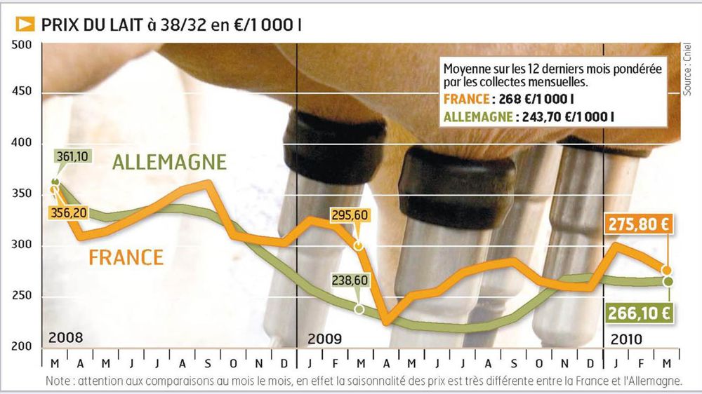 La forte réactivité des marchés se traduit par une hausse timide mais générale sur les payes d'avril. Dans le nord, c'est 0,80 c/kg de mieux avec un prix de base moyen de 26,5 c/kg (à 37/34). Ainsi Nordmilch passe de 26 à 27 c. Progression plus marquée à l'est : 0,88 c, à 26,55 c de moyenne. La hausse est en revanche moindre dans le sud, où le beurre-poudre pèse moins. Les prix gagnent 0,52 c, à environ 26,83 c. Evolution intermédiaire à l'ouest : 0,61 c, à 25,58 c. Carton rouge néanmoins dans cette région pour Friesland- Campina, scotché à 23,5 c quand Humana augmente de 1 c, à 27 c/ kg, comme la MUH à 26 c.