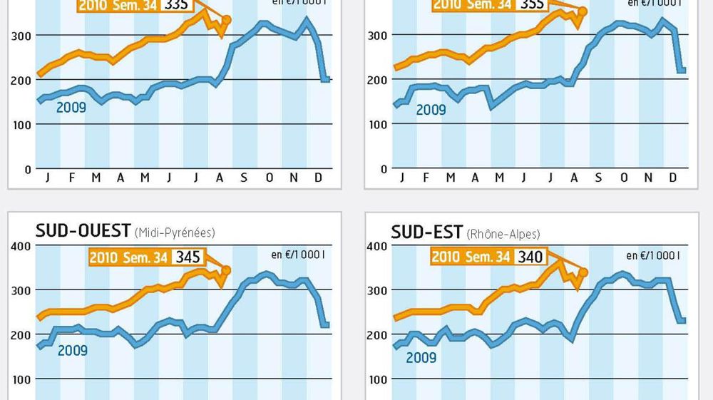 D'une semaine à l'autre, les cotations sont assez fluctuantes. Actuellement, on constate que la Hongrie, mais aussi l'Allemagne, envoient de grandes quantités de lait vers l'Italie et concurrencent le lait français sur ce marché. Globalement, les cours sont assez fermes avec la perspective de la rentrée des classes et des achats importants de beurre et de poudre par la Russie qui, avec la canicule et les incendies de l'été, manquerait de fourrage.