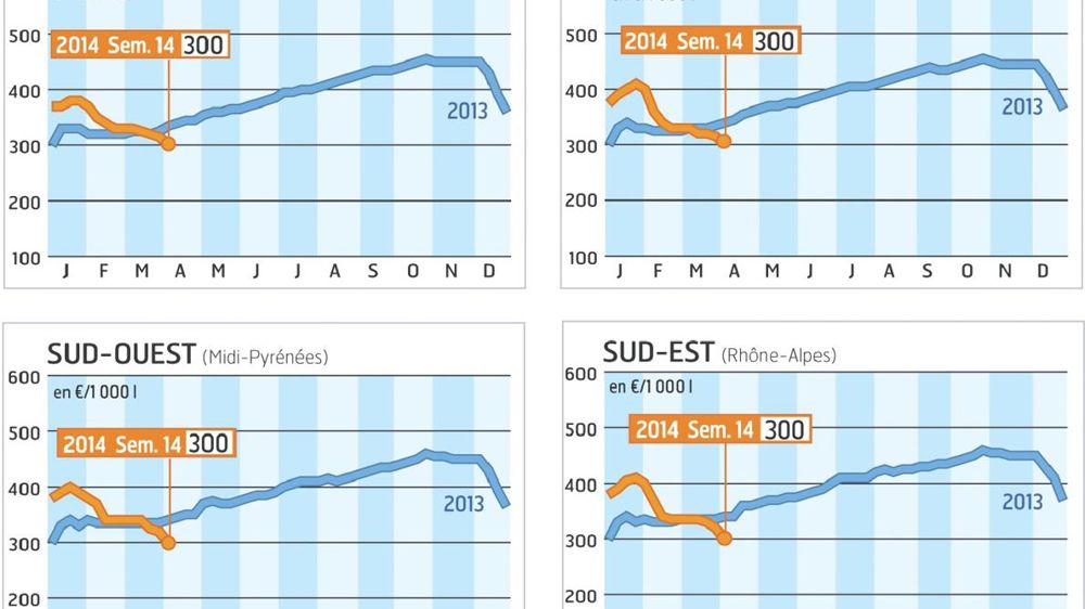 La dynamique de la collecte nationale et la capacité à saturation de nos outils industriels expliquent cette dépendance. En France, il n'y a quasiment plus d'acheteurs de lait Spot. C'est surtout en Espagne, et un peu en Italie, que nos excédents trouvent acquéreurs. Mais pour combien de temps au prix actuel en ce qui concerne l'Espagne ? La question est posée. En effet, le prix du lait vient d'y être renégocié à la baisse, ce qui fera pression, à terme, sur le cours du lait Spot français. La semaine sainte (avant Pâques) en avril, où tout s'arrête dans la péninsule ibérique, n'est pas non plus de bon augure pour les ventes à venir.