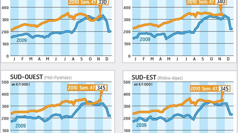 La nette remontée des cours tient à la reprise des fabrications de fromages. Cela vaut pour le marché de l'UE, avec l'approche des fêtes de Noël, et la Russie qui continue d'importer (pâtes pressées cuites). La demande est également soutenue pour le beurre. Les opérateurs qui misaient sur une baisse du prix qui n'a pas eu lieu sont aujourd'hui contraints d'acheter. Sur la matière grasse, le marché resterait porteur en décembre. En revanche, on s'attend à une baisse début 2011. Même pronostic pour le marché de la protéine. La faute aux États- Unis qui auraient des stocks importants de poudre de lait à vendre.