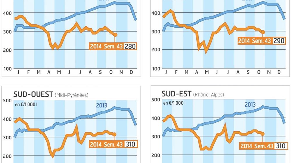 C'est à une baisse importante des cours, difficile à évaluer, à laquelle s'attendent ceux qui traitent du lait Spot. En octobre, elle est encore restée contenue du fait d'une collecte européenne à son creux de production et qui ne va redémarrer qu'en novembre. Les cours du Spot auraient aussi bénéficié du jeu de dominos européen sur le marché du lait concentré liquide et de la crème. La Pologne et l'Allemagne en ont respectivement vendu à la Biélorussie et la Lituanie (qui fabriquent avec des produits pour la Russie), créant une demande des laiteries allemandes pour du lait français.