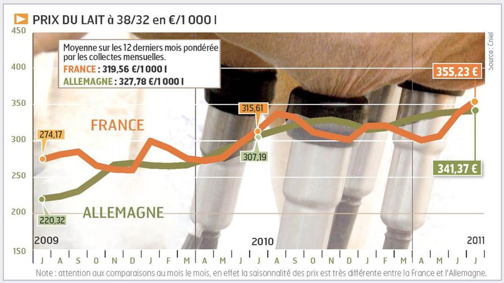 A de rares exceptions près, les laiteries d'outre-Rhin ont toutes reconduit en août, leurs prix de juillet. C'est dans le Nord que la moyenne est la plus élevée à 35,2 c/kg (lait à 40/34) sur 23 entreprises avec pour le moins 34 c pour six laiteries, pour le plus 36 c pour huit autres et une à 37 c. Dans le Sud, plus impliqué sur les PGC, le prix se rapproche des 35 c, à 34,8 c dans 21 laiteries. Les écarts entre les extrêmes y sont plus resserrés (33,7 à 35,5 cts). Dans l'Est, le prix moyen s'établit à 34,1 c et à 33,5 c dans l'Ouest. La Muh, grosse exportatrice de lait de consommation, y tient toujours la cuillère de bois à 32 c.