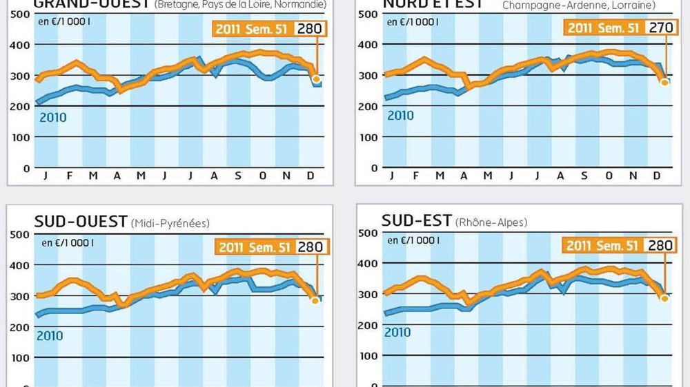Lait en excédent échangé par les entreprises, prix départ quai usine. Source : enquête de L'Éleveur laitier.
