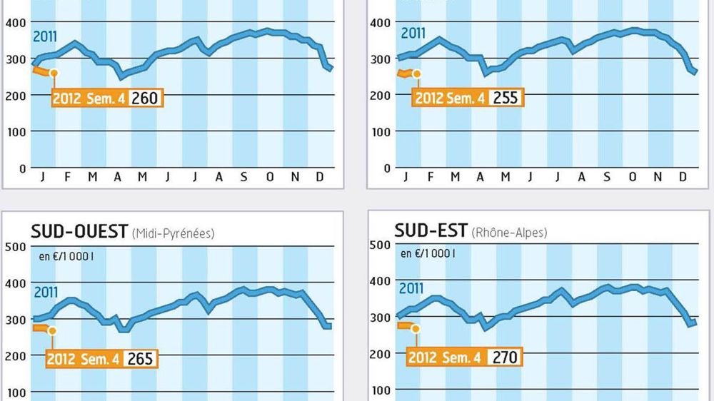 La traditionnelle reprise des cours après la trève des confiseurs tarde. Pour cause, il y a beaucoup de lait disponible sur les marchés français, allemand et néerlandais. En face la demande des IAA reste timorée. Les fabricants de produits frais, lait UHT ou glaces manquent de visibilité sur l'avenir d'une consommation qui commence à être malmenée par le climat ambiant de crise et de chômage. La demande russe en fromages allemands marque aussi le pas. Seul rayon de soleil : la demande à l'export sur les dérivés du sérum et la poudre écrémée, toujours dopée par la parité €/$.