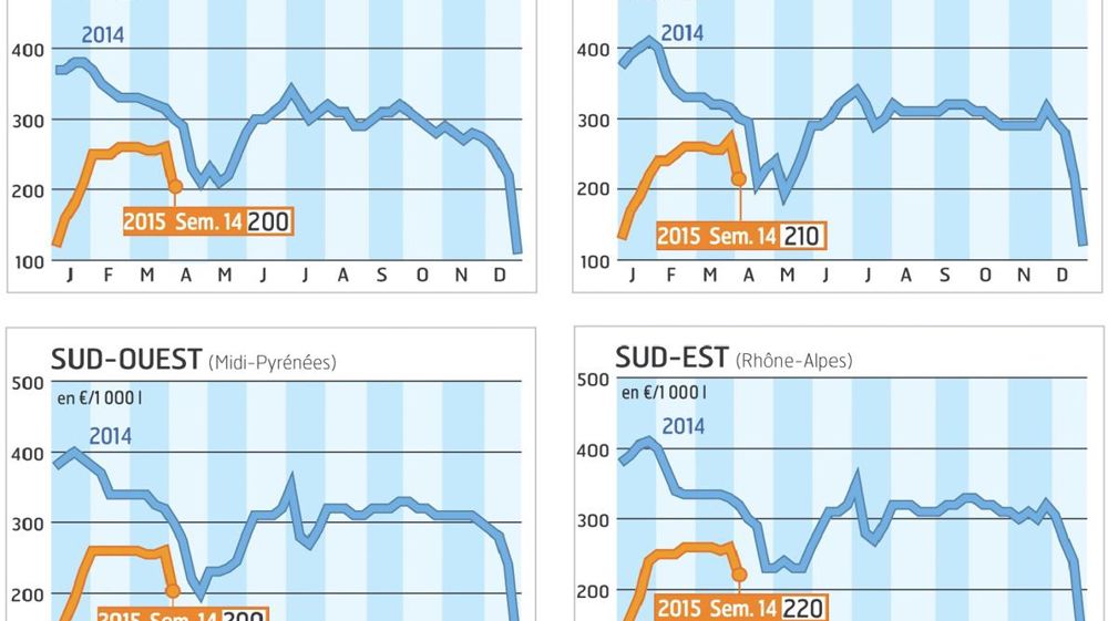 Il y a un mois, on prédisait une montée en flèche des cours qui n'a pas eu lieu. La faute aux marchés Spot du beurre et du lait concentré qui, passé un vent de panique d'achats, sont retombés. « On s'est retrouvé face à une offre de lait entier limitée comme en été et une demande aussi limitée qu'à Noël », constate ce courtier. Résultat : des cours exceptionnellement stables en mars jusqu'à la chute attendue liée à l'effet week-end de Pâques. L'activité tourne au ralenti. On est face à des IAA maintenant couvertes qui misent sur une baisse des prix avec le pic de collecte du printemps pour revenir sur le marché.