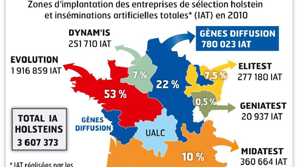 Le départ d'Elitest est un fait marquant de l'exercice clos par l'union de coopératives Gènes Diffusion. Après cinq ans de collaboration, la coopérative basée dans l'est de la France a choisi de conduire son propre programme de sélection holstein, en partenariat avec Évolution, groupe leader de la sélection bovine, avec 33 000 adhérents, un chiffre d'affaires de 128 millions d'euros et 63 % de la génétique holstein (compte tenu du partenariat avec Midatest). « Certains pourraient voir dans ce rapprochement la constitution d'un monopole de la génétique holstein », avance François Desmons, directeur de Gènes Diffusion.