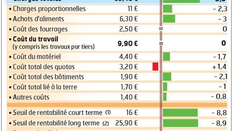 L'efficacité économique de cette exploitation familiale est donc bien réelle. Elle se décline sur plusieurs plans. D'abord, la productivité du travail : un couple, 100 vaches et 900 000 l produits. EDF l'évalue en kg de lait/heure de travail.