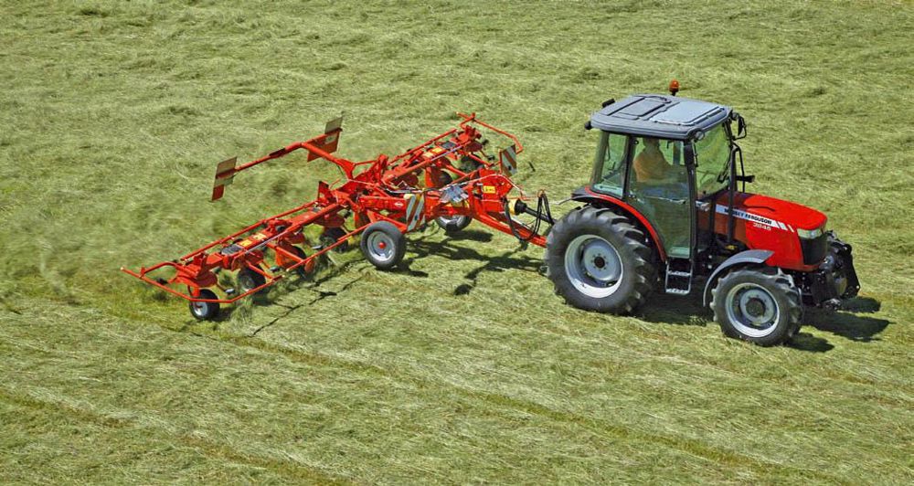 La gamme de girofaneurs Kuhn s'enrichit avec l'arrivée de quatre nouveaux modèles. Il s'agit des girofaneurs traînés par timonet GF 7702 T (8 toupies, 7,70 m), GF 7802 T (6 toupies, 7,80 m), GF 8702 T (8 toupies, 8,70 m) et GF 10802 T (10 toupies, 10,80 m). Équipés de toupies de petit diamètre, ils sont adaptés pour la reprise de trois andains d'une faucheuse de 3 à 3,50 m. La structure porteuse permet une utilisation de tracteurs de faible puissance. Les toupies assurent une bonne adaptation aux dénivellations du terrain et un retournement efficace grâce à un piquage élevé. L'entraînement Digidrive est toujours de mise mais ces machines bénéficient de nouveaux boîtiers de rotors sans entretien. Le réglage du piquage s'effectue par un seul levier. Les girofaneurs GF, de la série 1002 T, sont dotés en série d'un dispositif de mise en oblique hydraulique centralisé.