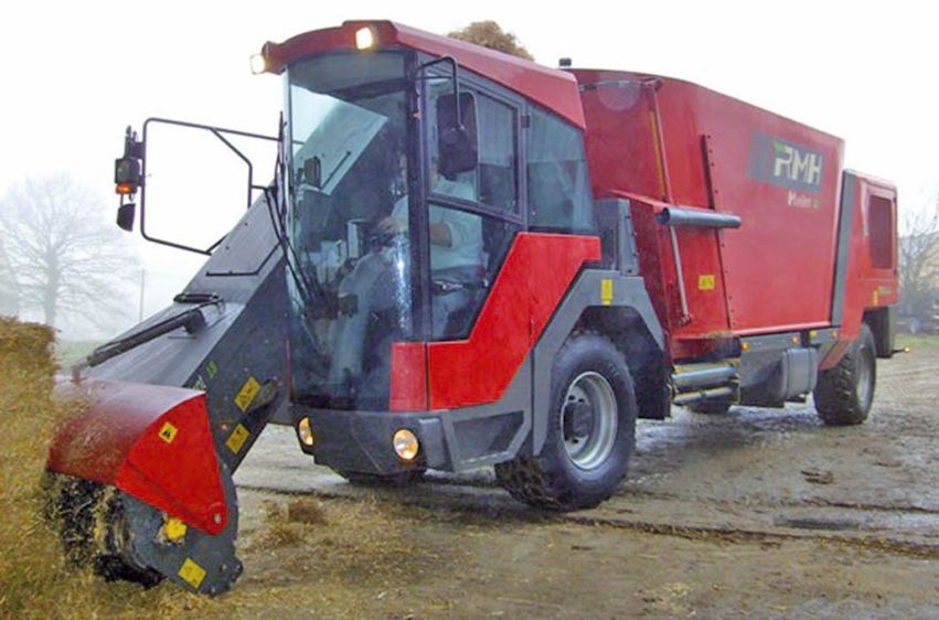 CE SONT DES MÉLANGEUSES QUI VEULENT S'INSCRIRE dans un créneau haut de gamme avec six machines à double vis verticales de 16 à 26 m3 de capacité. Avec quatre roues directrices (40° d'angle de braquage) et une largeur de 2,33 m, elles affichent une bonne maniabilité. RMH insiste sur le contrôle électronique intégral de son automoteur : la fraise de chargement à vitesse de rotation variable est ajustable et préprogrammable en fonction de chaque aliment. La vitesse de rotation des vis de mélange est gérée électroniquement. Elle varie en fonction de l'effort du système hydraulique demandé à la machine.