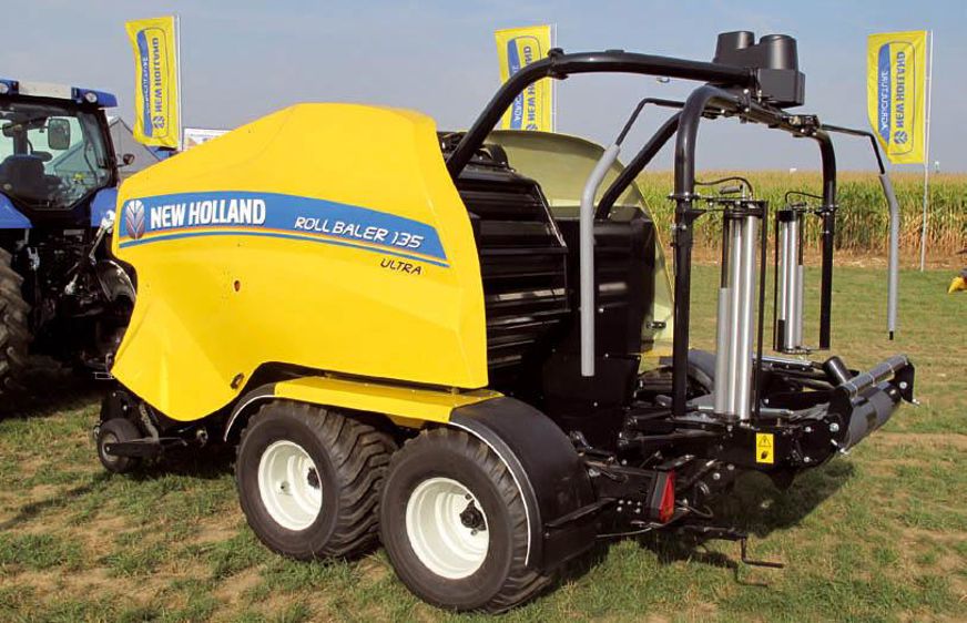 New Holland complète par le haut sa gamme de presses à balles rondes à chambre fixe. Cette nouvelle série appelée Roll Baler comporte trois modèles : la Roll Baler 125 Standard et deux combinés presses-enrubanneuses, le Roll Baler 125 Combi et le Roll Baller 135 Ultra. Sur cette gamme, New Holland insiste sur la qualité de l'alimentation, l'homogénéité des balles et la fiabilité de ces machines. La gamme Roll Baler possède un rotor de 470 mm, qui comporte des dents de 10 mm d'épaisseur. La chambre de compression est composée de dix-huit rouleaux de 200 mm de diamètre. Ce grand nombre de rouleaux assure une répartition régulière du fourrage sur toute la circonférence de la chambre, tout en éliminant les contraintes excessives. Un moniteur spécifique à ces machines permet une commande du bout des doigts de toutes les fonctions. De plus, le centre de gravité abaissé garantit une bonne stabilité, même dans les dévers. Les deux modèles Roll Baler 125 Combi et 135 Ultra sont compatibles avec le liage-filet traditionnel et le nouveau système de liage par film étirable. Ce dernier permet d'économiser sur le coût de l'enrubannage avec moins de film. Avec sa transmission renforcée à double chaîne, la presse Roll Baler 135 Ultra est une machine particulièrement destinée à un usage intensif. Son diamètre de balle est réglable en cabine de 125 à 135 cm. La densité est aussi réglable depuis la cabine grâce à un système exclusif de régulation hydraulique.