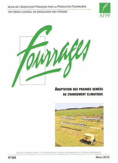 La revue « Fourrages » présente les principales avancées des travaux de recherche du projet Climagie de l'Inra, consacré à l'adaptation des prairies au changement climatique. À l'heure où les cultures fourragères doivent affronter des étés secs, des saisons moins marquées, de nouveaux assemblages d'espèces et de variétés permettent d'adapter la production des prairies semées aux conditions à venir. Cinq articles de synthèse montrent les potentialités existantes et les perspectives actuelles.