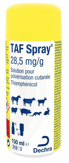Nouvel acteur sur le marché national dans le secteur des animaux de rente, le laboratoire anglais Dechra remet au goût du jour le thiamphénicol, une matière active antibiotique utilisée dans le traitement des infections du pied et du sabot chez les bovins, ovins et caprins. Dechra le propose sous forme d'un spray à pulvériser sur la zone affectée pendant trois secondes, une fois par jour, jusqu'à trois jours consécutifs. Selon un essai mené dans cinq fermes laitières aux Pays-Bas, l'utilisation de ce spray à base de thiamphénicol serait plus efficace qu'un spray à base d'oxytétracycline dans le traitement des lésions de type M2 de la maladie de Mortellaro, cette forme ulcérative très douloureuse et source de contamination pour les autres animaux. La délivrance de cet antibiotique à large spectre (bactéries Gram+ et Gram-) est évidemment soumise à une prescription vétérinaire.