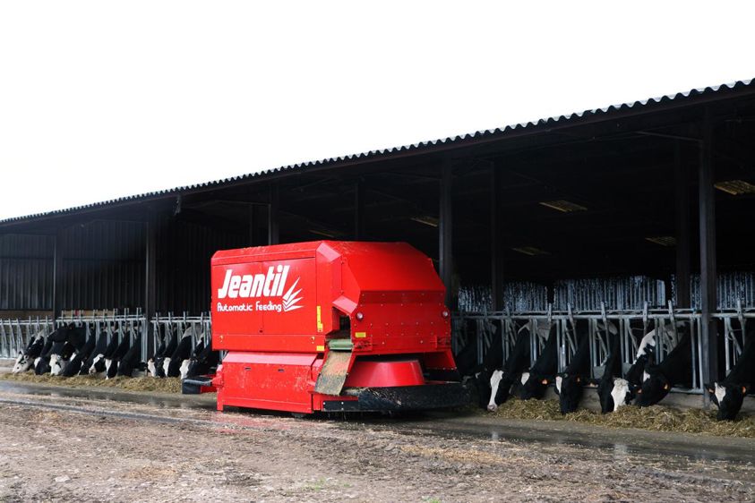 L’Automatic Feeding, de Jeantil, comprend des cellules de stockage adaptées à chaque type de produits, un bol de mélange à poste fixe et un automate de distribution filoguidé sur roues de 3 ou 4 m3. Le constructeur met en avant l’autonomie importante de l’installation complète. D’autant que la préparation de la ration à l’avance réduit le temps de fonctionnement du robot. Jeantil annonce des temps de fonctionnement de trois à huit heures par jour chez ses clients. L’ensemble est modulable et peut évoluer dans le temps. Il est possible également de préparer une ration pour la déverser dans une distributrice sur tracteur afin d’aller nourrir un lot d’animaux sur un autre site.