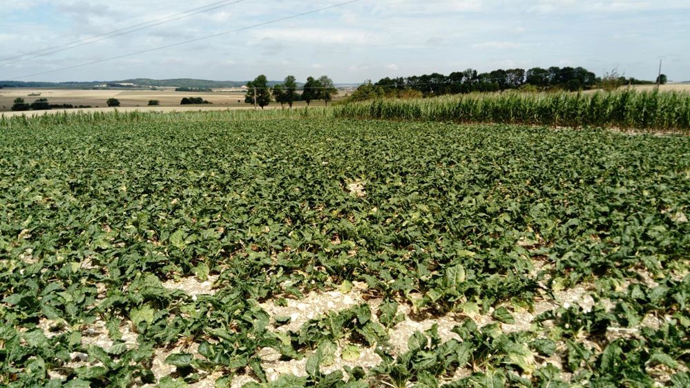 Pour tenir compte de la longueur des engins de récolte et éviter d’écraser la betterave lors du chantier, semis d’une bande de 12 m autour de la parcelle avec une autre culture (souvent du maïs). Une autre option pourrait être de faire pâturer les pourtours de la parcelle.