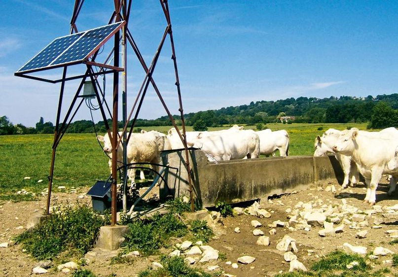 Dans sa gamme Eco-Soleil, la société basée en Ille-et-Vilaine propose un kit de pompage à eau solaire autonome destiné à l'abreuvement du bétail sur site isolé. Le kit de base se compose d'une pompe immergée en acier inoxydable, d'un boîtier de contrôle, de modules solaires, d'un contacteur et d'un flotteur adaptable sur tout type d'abreuvoir. Quatre kits sont disponibles en fonction de la distance de pompage et du dénivelé, pour un prix de 2 350 à 5 870 € pour le modèle à huit modules solaires qui autorise une profondeur de pompage de 100 m. Ce dispositif ne nécessite aucun raccordement au réseau et fonctionne été comme hiver grâce à une autonomie de 20 heures sans ensoleillement.