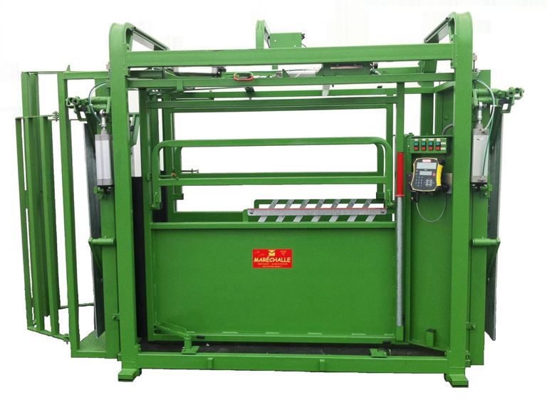 Maréchalle Pesage propose une automatisation de tout ou partie des commandes manuelles de ses cages de contention. Cela concerne l'ouverture et la fermeture des portes avant et arrière, des parois rétractables et du lève-tête. Elle est permise grâce à des vérins pneumatiques qui possèdent un contrôle de débit pour accélérer ou ralentir l'ouverture ou la fermeture des portes. Les commandes se pilotent avec un boîtier sur la cage, mais aussi à distance grâce à une télécommande. Cela permet à l'opérateur de moins effrayer l'animal et de se placer dans une position de sécurité. Le constructeur offre la possibilité d'automatiser une à six commandes selon les besoins de l'éleveur.