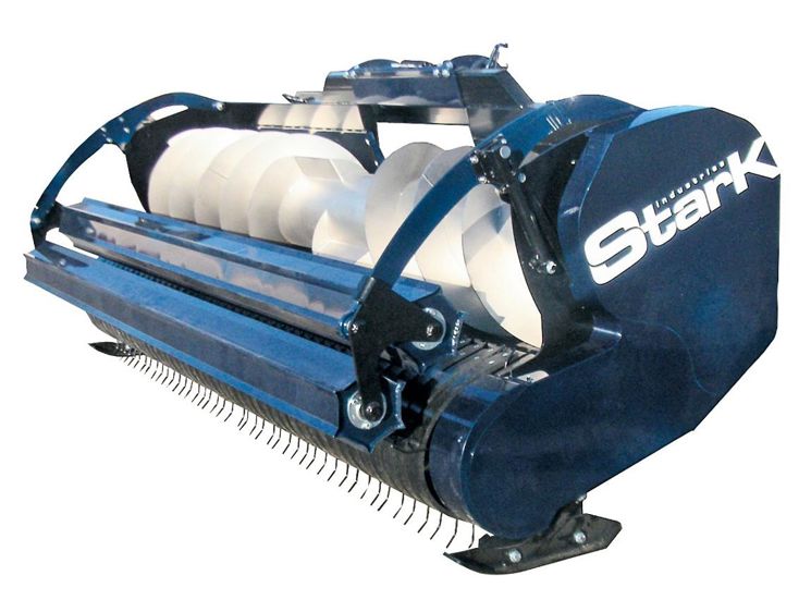 Le pick-up à herbe Stark, disponible en version fixe ou repliable, est équipé d'une vis d'alimentation flottante de grand diamètre (595 mm) en acier inoxydable à double spires, contre une vis en métal plus petite et à simple spire pour les modèles actuellement sur le marché. Cette innovation propre à Stark permet une meilleure alimentation de l'ensileuse et une plus longue tenue dans le temps. D'une largeur de 3 à 4,50 m, les pick-up Stark se replient via un cardan automatique pour éviter à l'utilisateur d'avoir à descendre de l'ensileuse. Le ramasseur sans came avec garants en polyéthylène, et non en métal permet une récolte de qualité, même sur de l'herbe fine. Un tasse-foin à double rouleaux sur balancier a été installé pour avoir un très bon contact peigne-rouleau. Pour un ramassage à grande vitesse, Stark a choisi d'intégrer six rangées de peignes à son équipement, avec un écart de 72 mm entre chaque peigne.