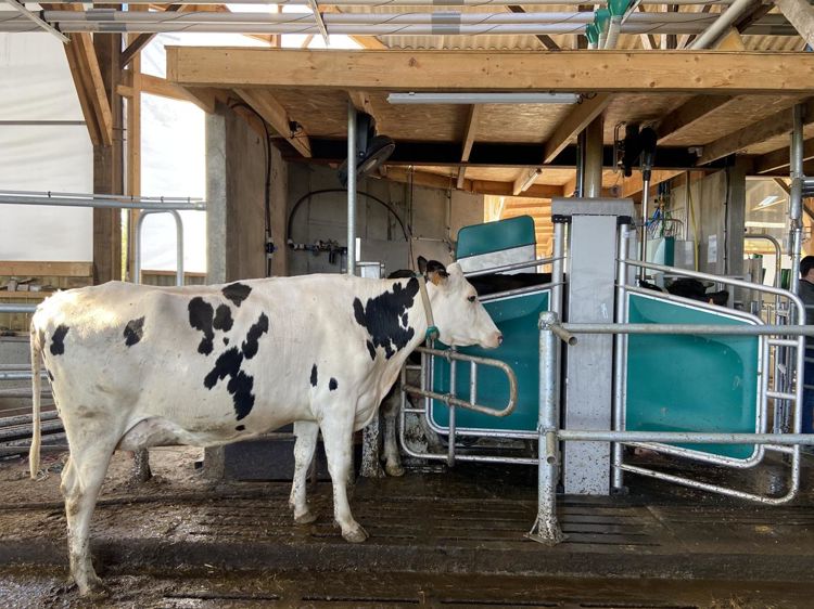 La philosophie de GEA consiste à traire rapidement, mais en douceur pour privilégier la santé des vaches. Toutes les opérations, du lavage au post-trempage, s’effectuent dans le même manchon afin de gagner du temps. Le branchement réclame trente secondes en moyenne. Chaque éleveur peut paramétrer le temps de lavage et de préparation ainsi que le niveau de vide, dans le respect du confort de la vache. L’auge est fixée sur la porte de sortie et sa position s’ajuste en fonction de la taille de l’animal pour limiter ses mouvements. Le logiciel permet de trier les vaches en fonction de critères choisis par l’éleveur. Une appli signale les vaches en retard et précise où elles se trouvent pour que l’éleveur puisse les observer. Le module de maintenance regroupe toutes les fonctions en un seul bloc. Cette pièce peut être enlevée et remplacée par une autre en cas de panne afin de garder le robot actif. GEA installe deux bocaux de réception du lait (tank et à jeter). Le lavage de l’un n’empêche pas le robot de brancher une vache sur l’autre, ce qui réduit aussi les temps morts.