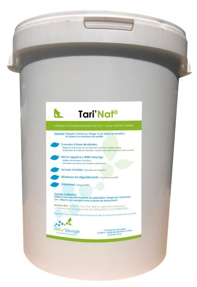 Tari’Nat est un aliment complémentaire minéral 100 % naturel qui concentre six valences primordiales pour la phase de préparation au vêlage :