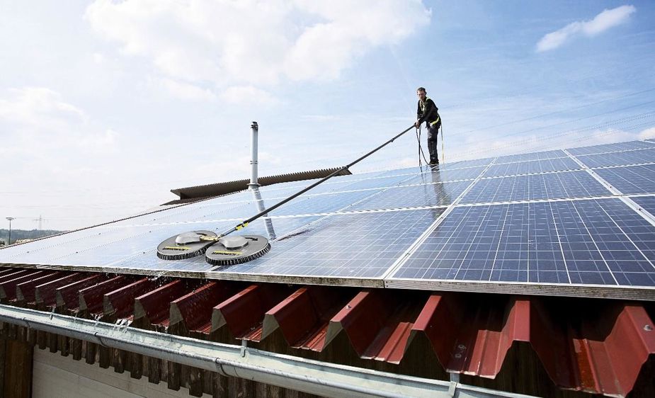 Partant du constat qu'une installation photovoltaïque peut perdre jusqu'à 25 % de son rendement par an à cause de l'encrassement de ses cellules, la société Kärcher a mis au point une solution de nettoyage pour panneaux photovoltaïques : le système iSolar. Il se compose d'une brosse-disque en nylon rotative de 400 ou 800 mm de diamètre qui fonctionne à basse pression pour éviter tout risque d'endommager la structure, d'une lance télescopique en fibre de carbone ou en fibre de verre d'une portée de 7 à 14 m à laquelle peuvent s'adapter des rallonges flexibles spécialement étudiées, d'un adoucisseur d'eau, d'un équipement de sécurité et d'un détergent spécifique appelé RM 99 et conçu pour un nettoyage sans trace. Le réglage du débit d'eau à la poignée permet de réguler aisément la vitesse des brosses. Ce dispositif a été conçu pour nettoyer les salissures comme la pollution, les fientes ou le pollen, tout en empêchant la formation de résidus de calcaire et en ralentissant le réencrassement des structures. La présence d'un adoucisseur d'eau mobile, recommandée dans les régions où l'eau est très calcaire, permet de lutter contre les résidus de calcaire en réduisant la dureté de l'eau. www.karcher.fr