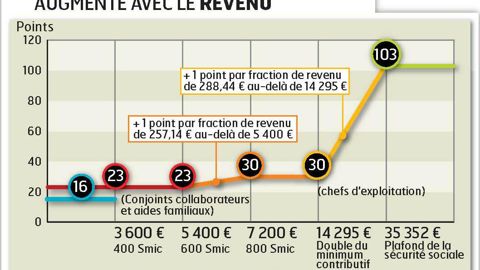 Par exemple, pour 32 000 € de revenus, l'agriculteur acquiert 195 points de retraite RCO