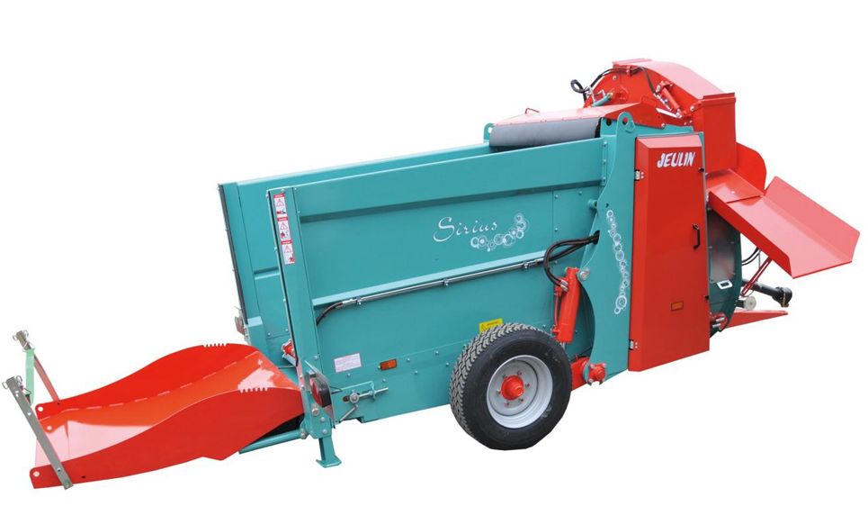 LA FIRME JEULIN, BASÉE DANS LE LOIR-ET-CHER, propose une nouvelle gamme de pailleuses dénommée Sirius. Elle se décline en trois modèles : Sirius 70 et Sirius 80 en essieu mobile de série, c'est-à-dire avec des vérins au niveau des roues qui permettent de descendre la caisse au niveau du sol. Cette option, qui facilite le chargement, est essentielle sur ces modèles car ils existent en version désileuse-pailleuse avec une pelle de désilage à l'arrière de l'attelage. Le troisième modèle, Sirius 90, possède une capacité de chargement de trois balles rondes (deux dans la caisse et une troisième sur la porte) en essieu fixe.