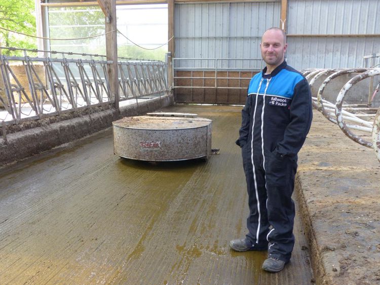 L’autre amélioration concerne la table d’alimentation. Elle était équipée d’une simple barre au garrot qui n’empêchait pas le foin de tomber dans le couloir. Il l’a donc remplacée par des cornadis. « Le foin continue de tomber dans le couloir mais moins. Il demeure responsable de patinages. Il fait un amas qui se coince entre la roue et la raclette du robot », observe-t-il. Pour lui, malgré ces deux changements, les conditions d’aspiration et de déplacement du robot restent plus compliquées qu’en 100 % lisier. « Cela réduit tout de même le risque de bouchage du canal d’évacuation du lisier vers la fosse. Moins on a de matières, mieux c’est. » Durant la saison de pâturage de février à novembre, Antoine arrose deux fois moins les sols de l’ensemble du bâtiment, les vaches et génisses y étant beaucoup moins présentes. Les 38 passages en vingt-quatre heures en hiver tombent à 20. C’est que, même dans la Manche, à 20 km de la mer, il faut gérer la croûte de lisier qui se forme par forte chaleur et vent chaud.
